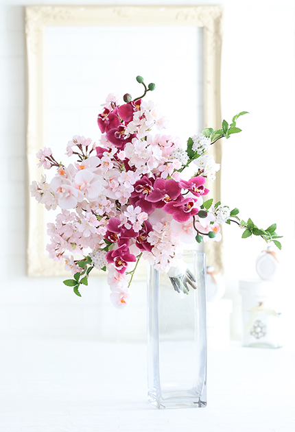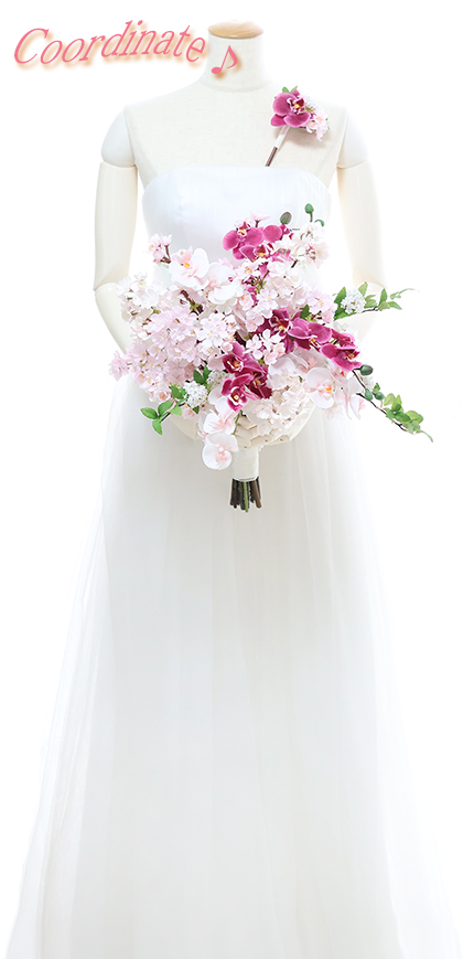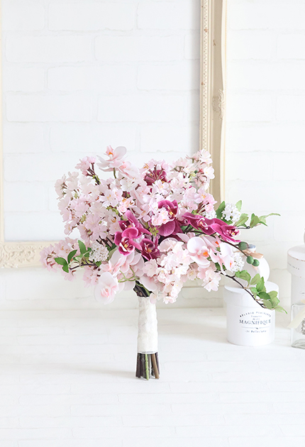 ◆ 雅なサクラと優美なコチョウランをふんわり束ねた麗しいブーケ♪ 和の佇まいをも思わせるブーケは和装にもマッチします!!