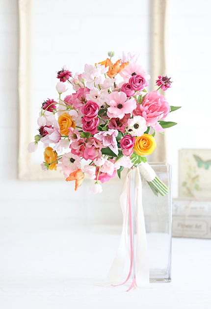 ◆ 艶やかな花色のお花をふんわり束ねた甘美でブリリアントなクラッチブーケ♪