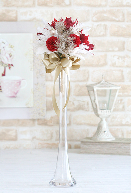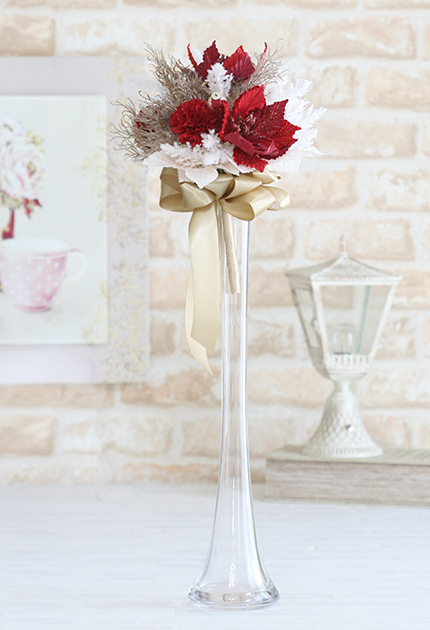 ◆ 使用花材: ポインセチア、パンパス、ホワイトリーフ、ファン、マム、クリスマスボール