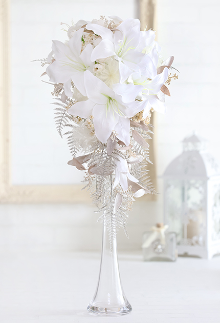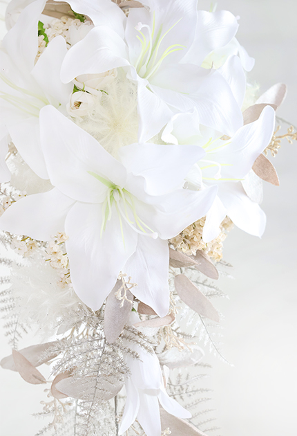 ◆ クラス感あふれるカサブランカとアッシュカラーのリーフを組み合わせた大人リッチなキャスケードブーケ♪
