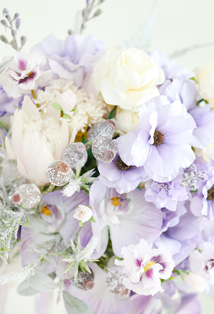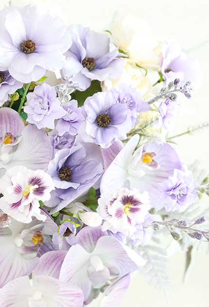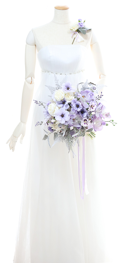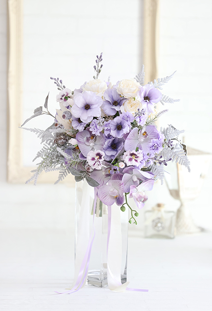 ◆ スモーキーなモーヴカラーのお花にオフホワイトのお花を差し色にした優雅さと優しさが溶け合う神秘的なクラッチブーケ♪ 少し重めです