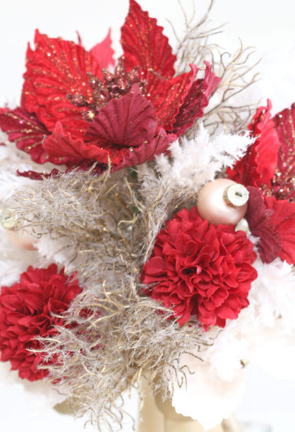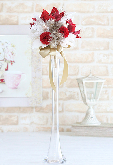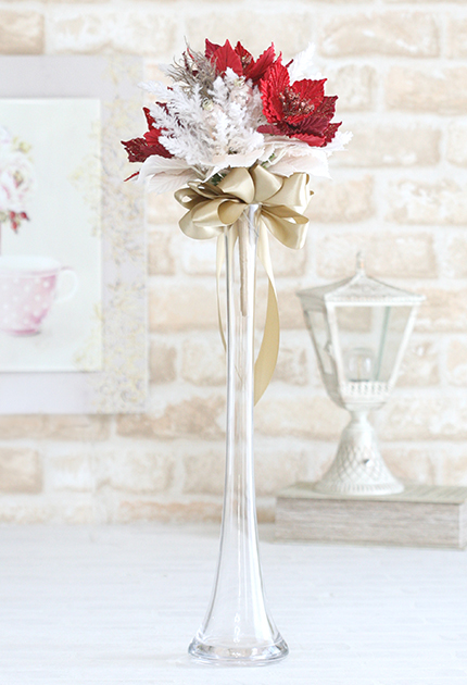 ◆ 使用花材: ポインセチア、パンパス、ホワイトリーフ、ファン、マム、クリスマスボール