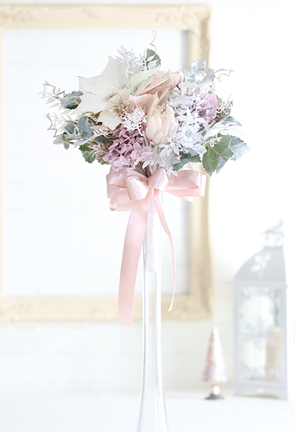 ◆ 使用花材:ポインセチア、アジサイ、グリーン各種