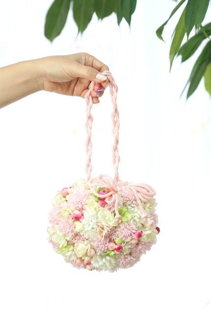 ◆ 清楚で可愛らしい印象のピンクとホワイトのバックブーケ♪