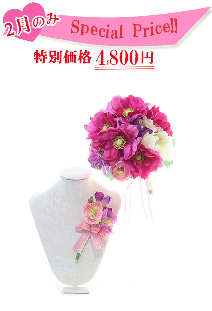ドラマティックフェミニンなクラッチブーケ&ブートニアが驚きの 4,800円!!