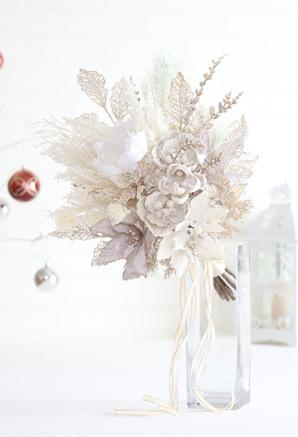◆ ビジューのように煌めくフラワーマテリアルを贅沢に束ねたゴージャスなクラシカルホーリーブーケ♪ ずっしり重いので両手持ちがベスト!!