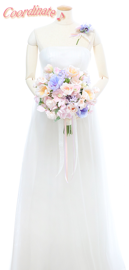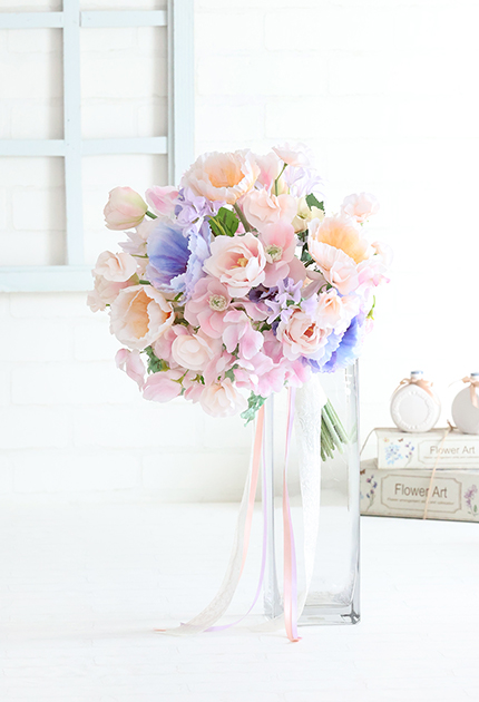 ◆ 甘く夢のようなパステルカラーのお花をミックスしたエアリーで初々しいクラッチブーケ♪