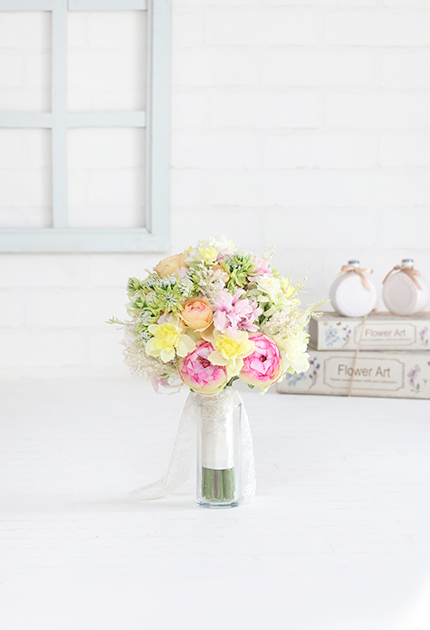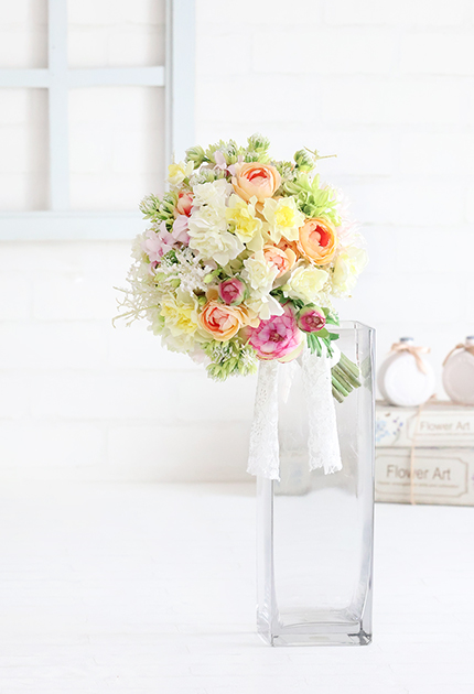 ◆ パステルカラーのたくさんの色をミックスしたナチュラルガーリーなブーケ♪