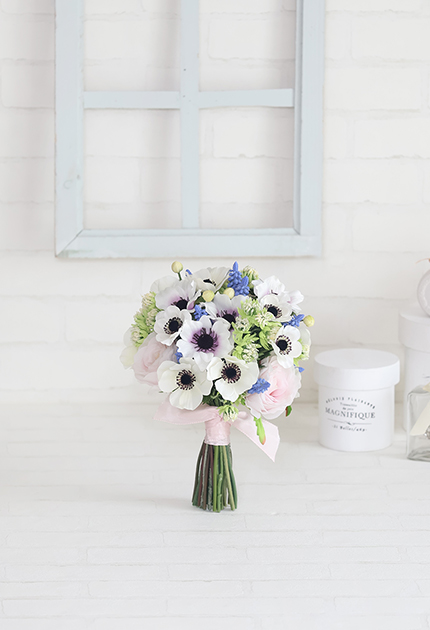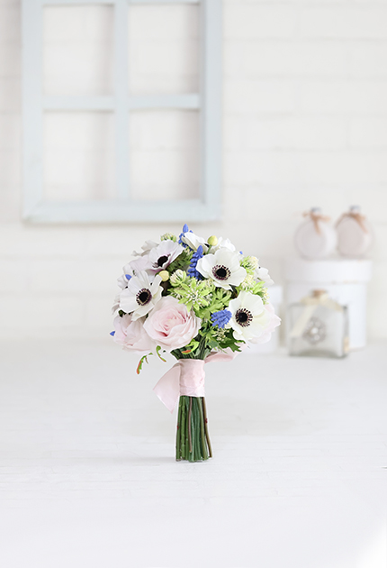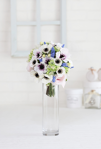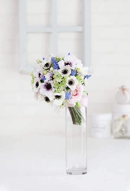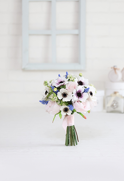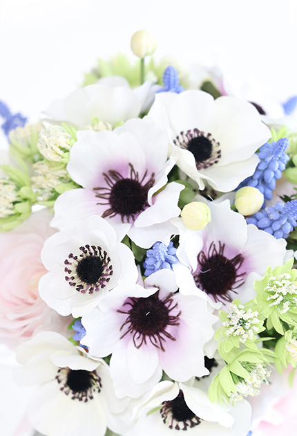 ◆ 使用花材:ムスカリ、バラ、アネモネ、アストランティア