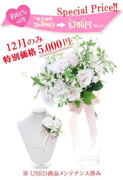 ナチュラルフェミニンなバラのブーケ&ブートニアが驚きの 5,000円!!
