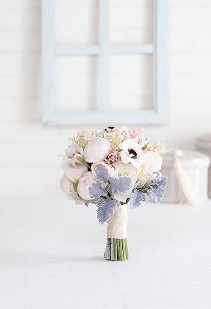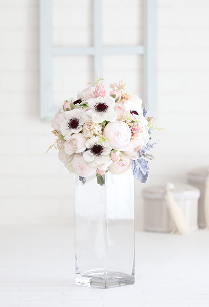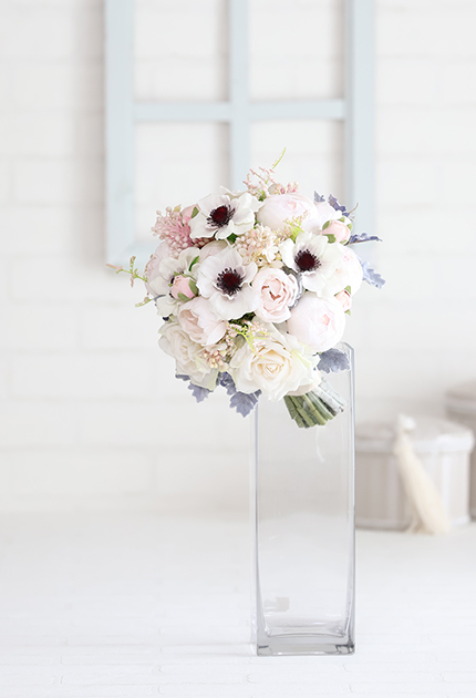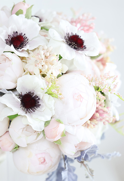 ◆ 使用花材: アネモネ、バラ、チューリップ、ライラック、アスチルべ、ダスティミラー、ラナンキュラス、シュガーバイン