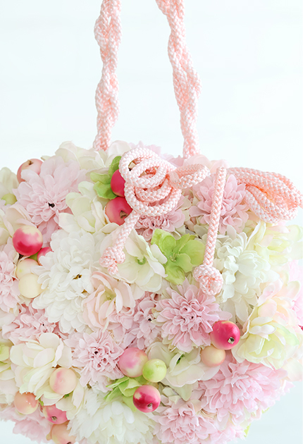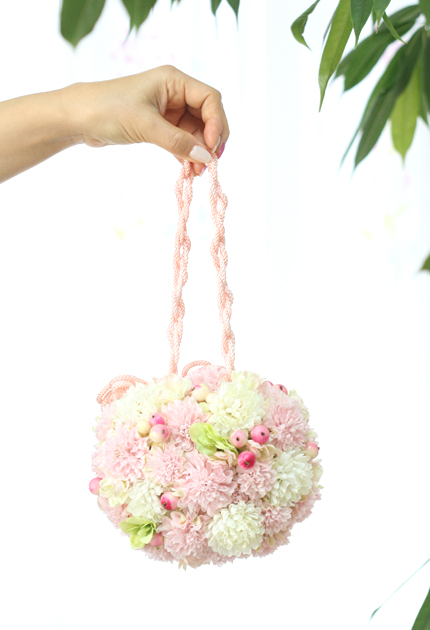 ◆ 清楚で可愛らしい印象のピンクとホワイトのバックブーケ♪