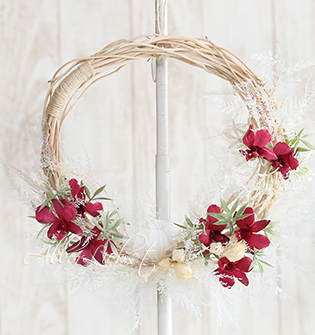 ◆ 透明感のあるホワイトリーフのふんわりと柔らかなリースアレンジ♪