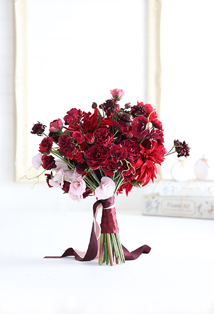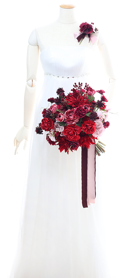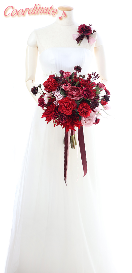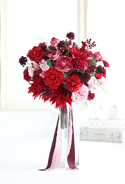 ◆ 華やかさを放つ濃淡レッドに甘美なベビーピンクをアクセントにした大人の甘さをまとったドラマティックなクラッチブーケ♪ ※ 少し重め!