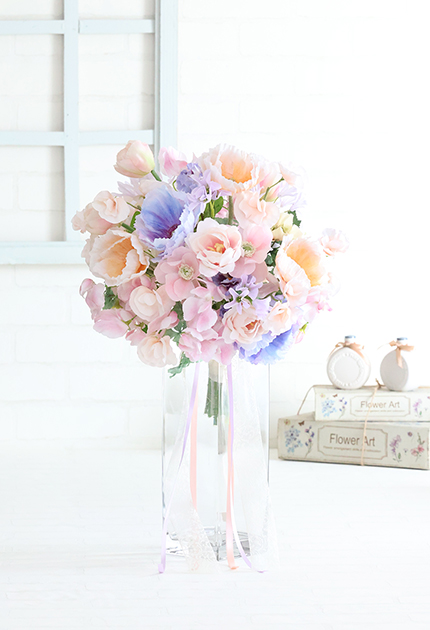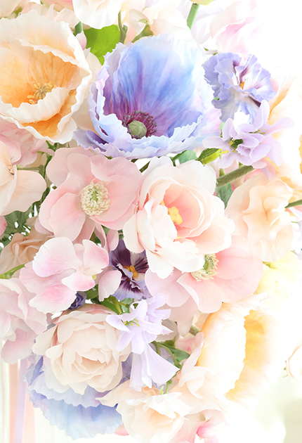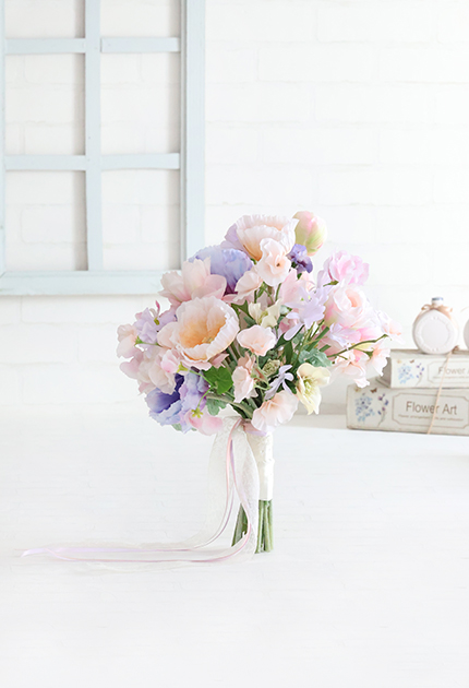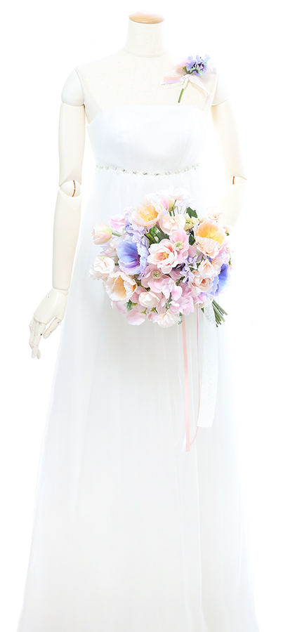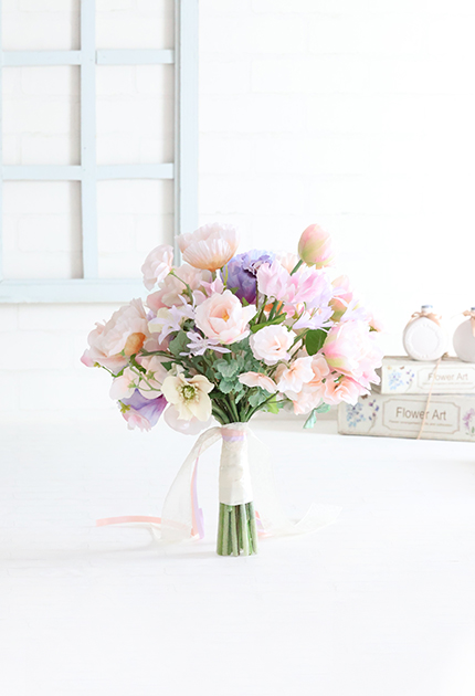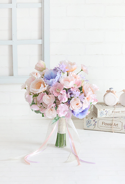 ◆ 甘く夢のようなパステルカラーのお花をミックスしたエアリーで初々しいクラッチブーケ♪