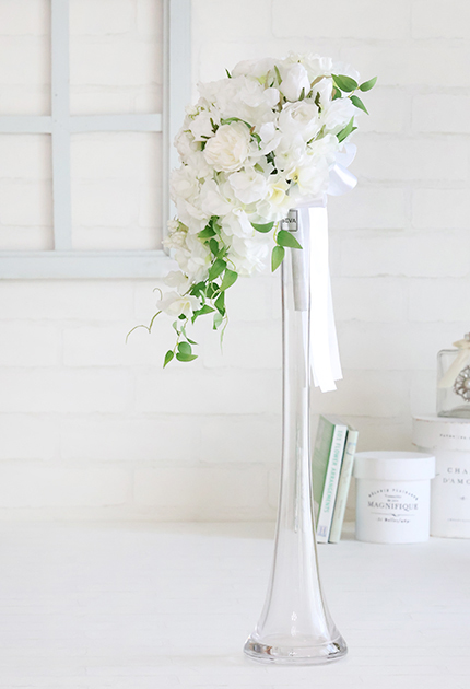 ◆ 神聖なシーンを華やかに可憐に彩る白花のティアドロップブーケ♪