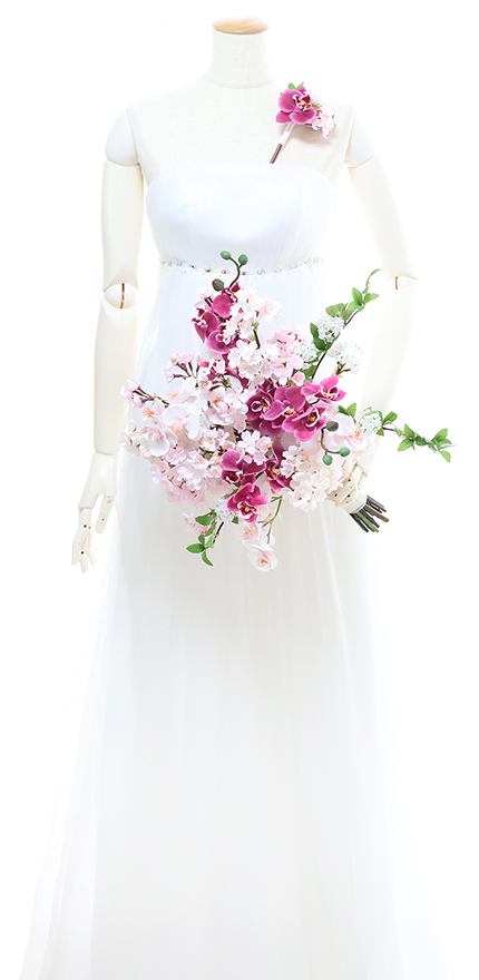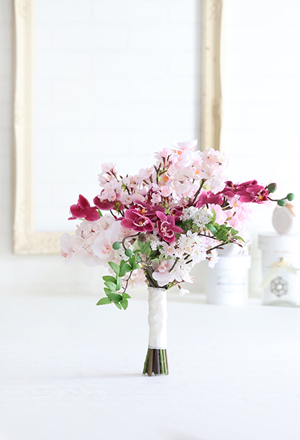 ◆ 雅なサクラと優美なコチョウランをふんわり束ねた麗しいブーケ♪ 和の佇まいをも思わせるブーケは和装にもマッチします!!