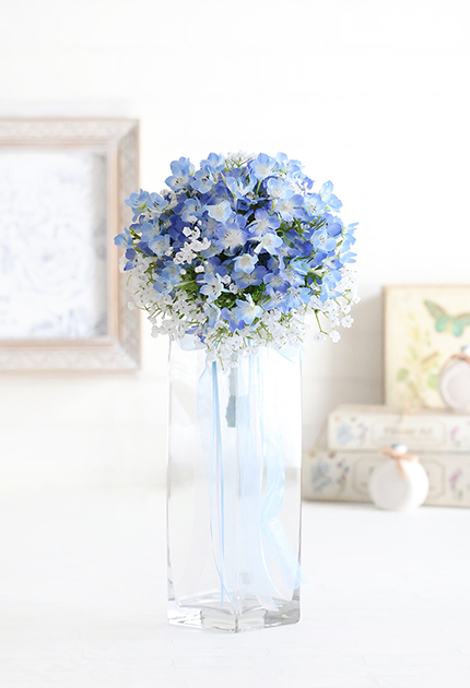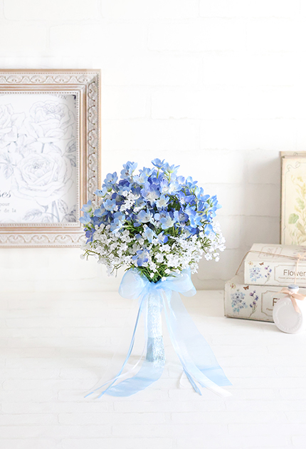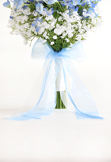 ◆ 天色の愛らしいネモフィラと可憐なカスミソウを束ねたフォレストフェアリーなクラッチブーケ♪