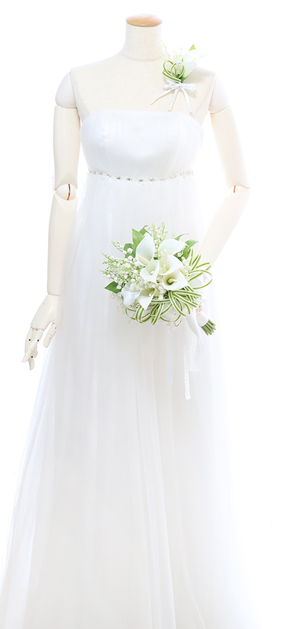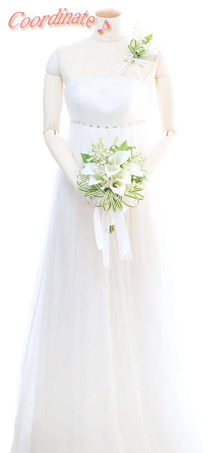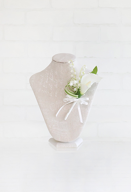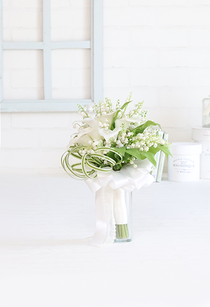 ◆ スタイリッシュなカラーとふっくら丸い小鈴のようなスズランを束ね、グリーンで立体感をプラスしたお洒落なブーケ。