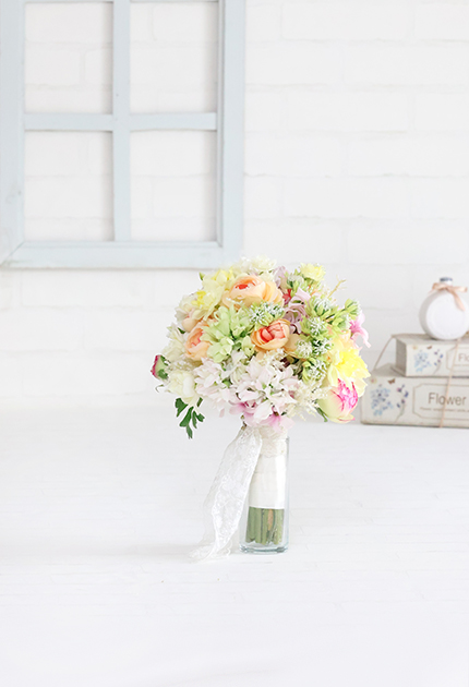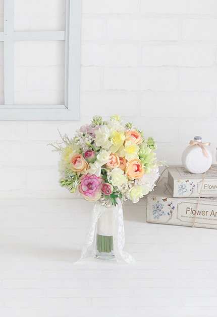 ◆ パステルカラーのたくさんの色をミックスしたナチュラルガーリーなブーケ♪