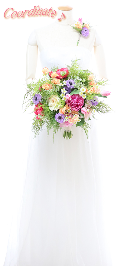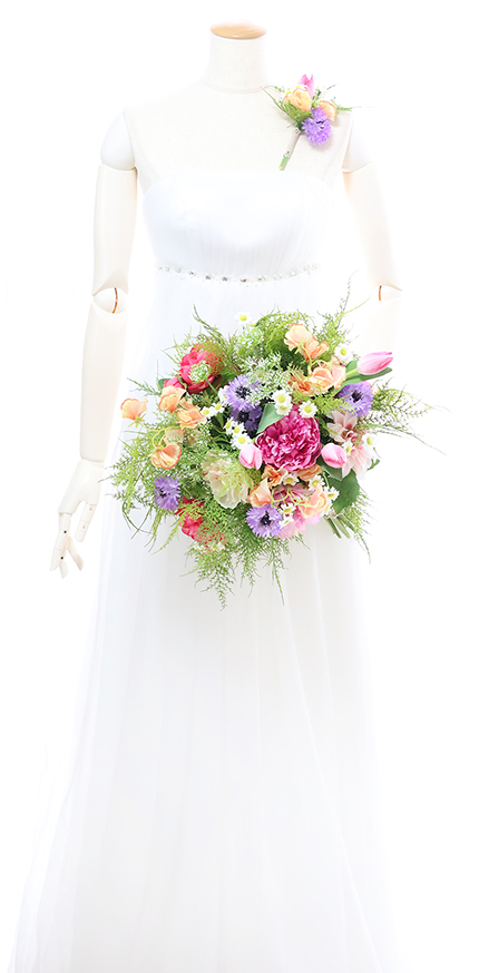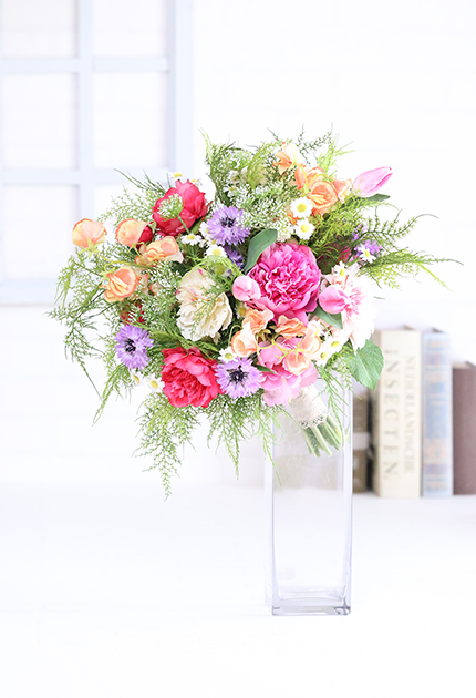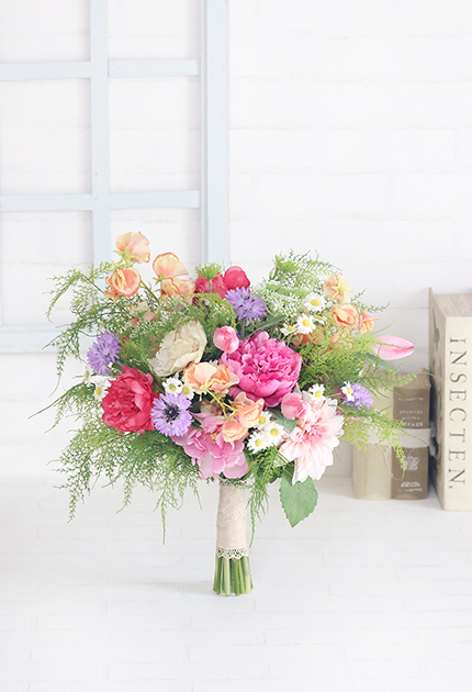 ◆ 麗らかな色とりどりのお花をダイナミックに束ねた優美なクラッチブーケ♪