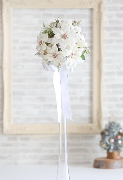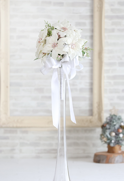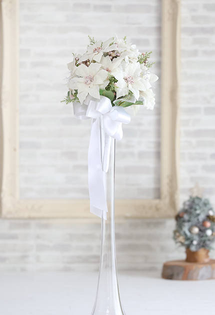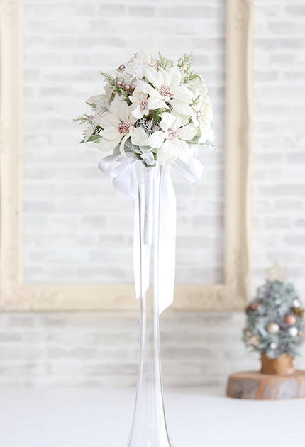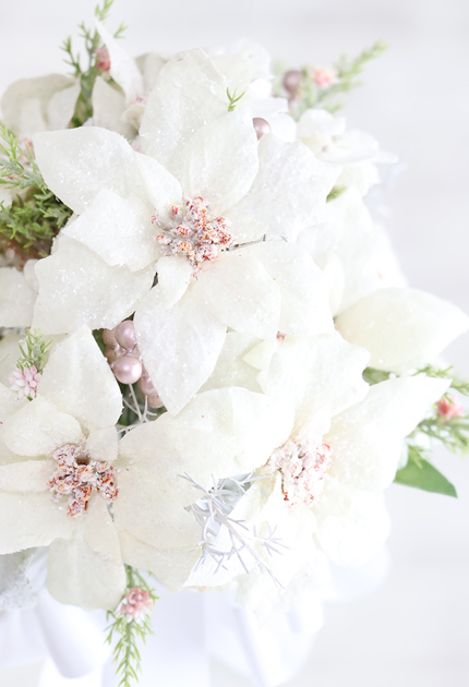 雪のヴェールをまとわせたようなポインセチアのホーリーブーケ♪