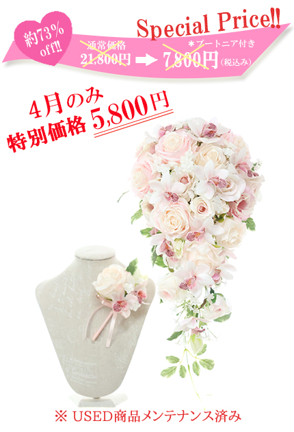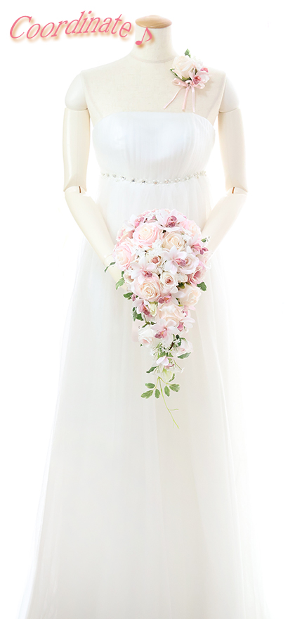 夢のように甘く流れるキャスケードブーケ&ブートニアが驚きの 5,800円!!